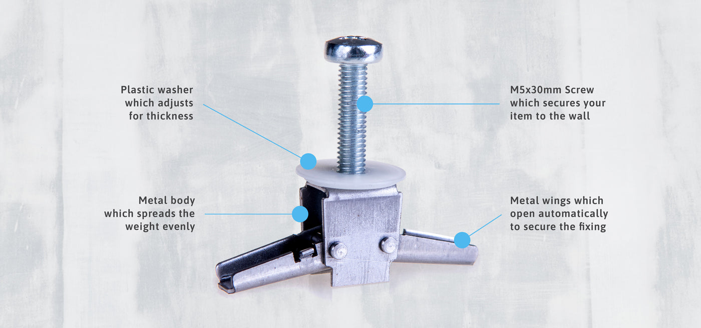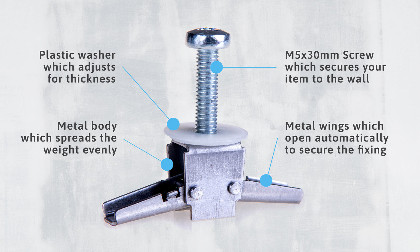 Hang anything to plasterboard walls - televisions, radiators, shelves, pictures, mirrors, curtains and more.